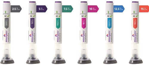 Mounjaro is a weekly self-injectable pen for weight loss and type 2 diabetes, containing Tirzepatide. It regulates blood sugar, reduces appetite, and curbs cravings. Available doses include 2.5 mg, 5 mg, 7.5 mg, 10 mg, 12.5 mg, and 15 mg.